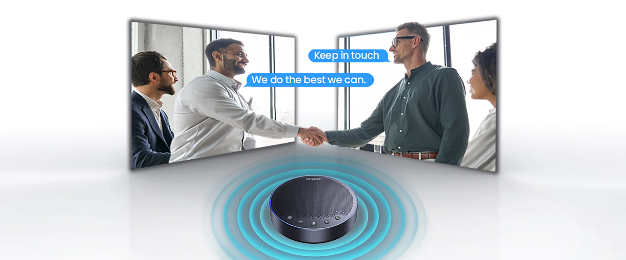 4 omni-directional microphones allow you to be heard anywhere in the room. The smart audio algorithm detects the active talker's position and the ring light illuminates on the corresponding side, denoting the incoming human voice direction accurately.