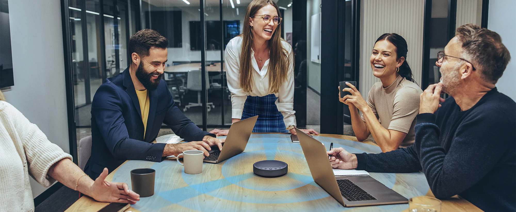 2022 Reddot winner with 360° voice pickup and positioning with ring light, latest VoiceIA®4.2 audio algorithm, initiated suspended mic cavity, 5W speaker and 20-hour long-lasting battery life, ideal for small to medium meeting rooms and work from anywhere.