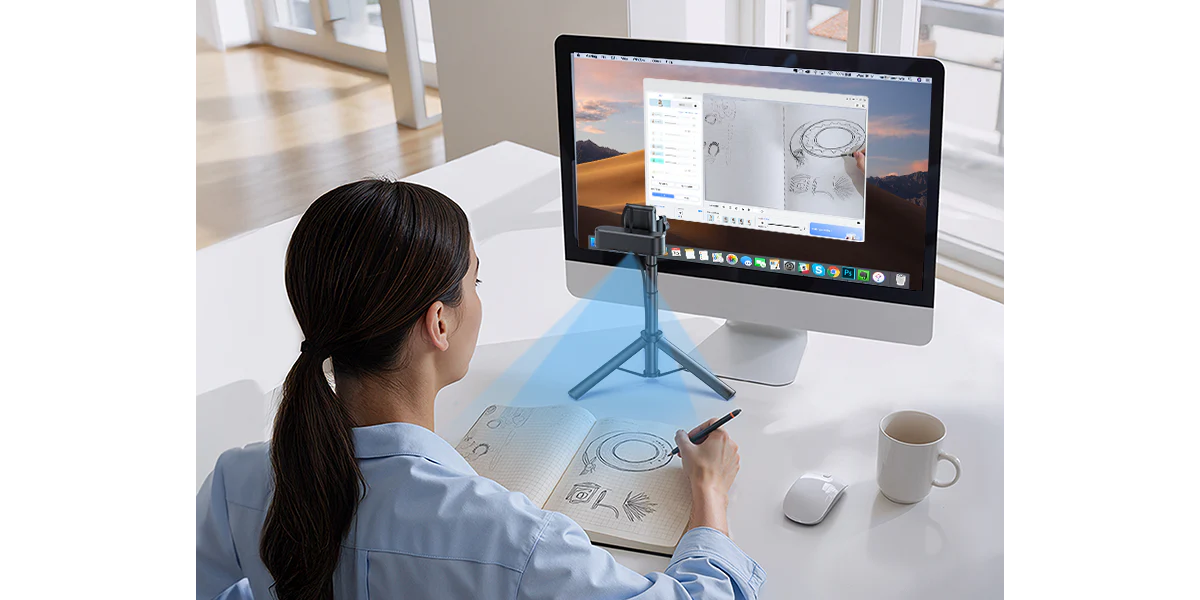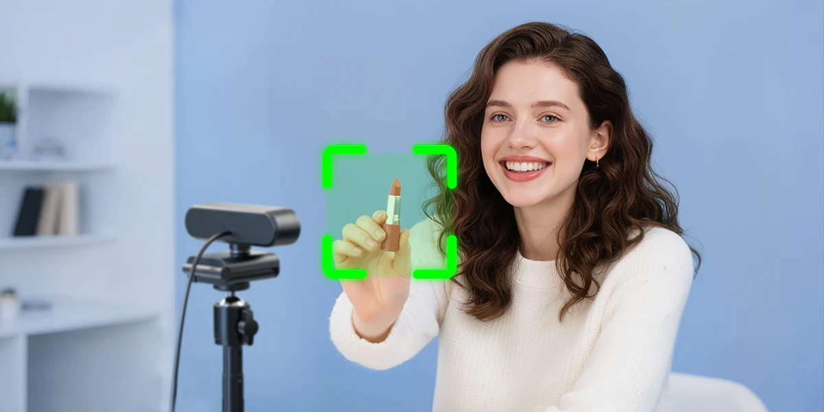 Tilt down your webcam with a tripod in Show Mode during your beauty live stream to share your makeup sketches and product swatches on the desk, enhancing real-time collaboration with viewers.
