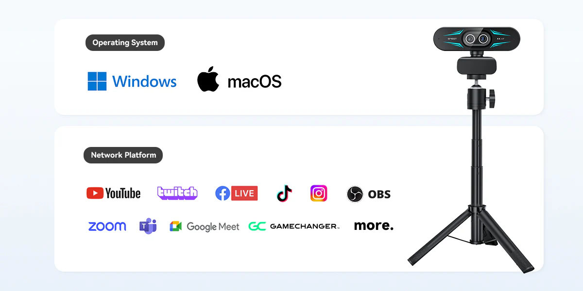 Compatible on Windows/macOS and works seamlessly with popular streaming and meeting software.