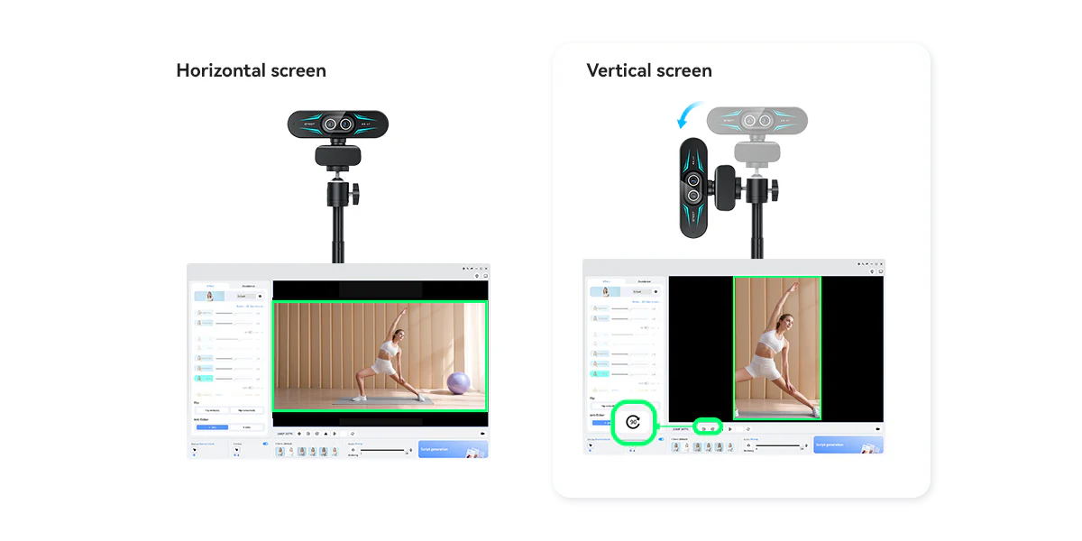 Mount it on a tripod with the 1/4" thread hole and rotate the camera for your mobile-ready content.